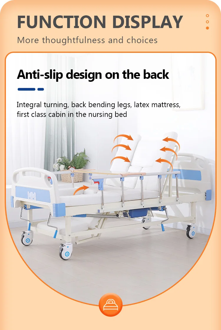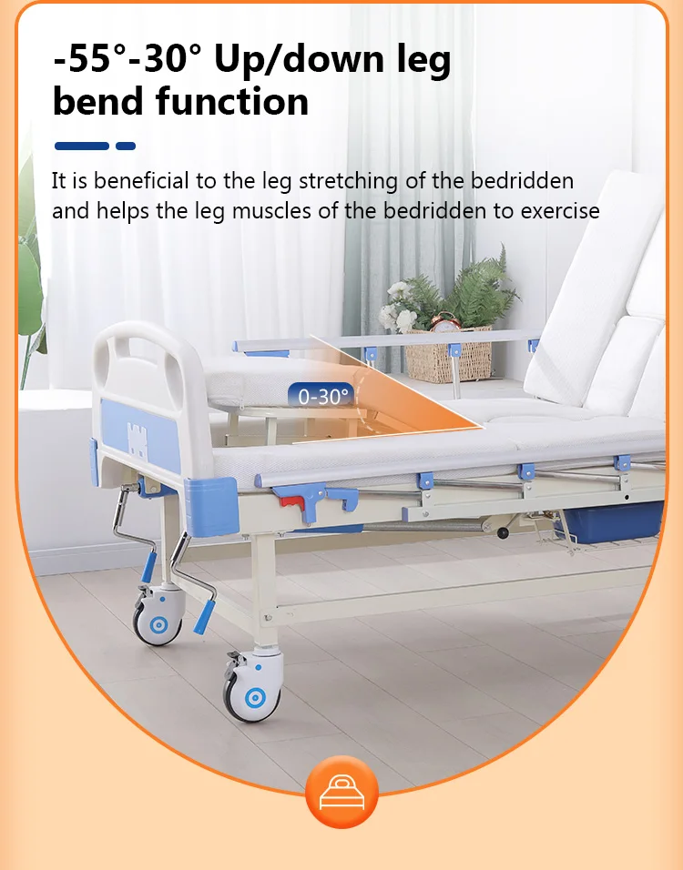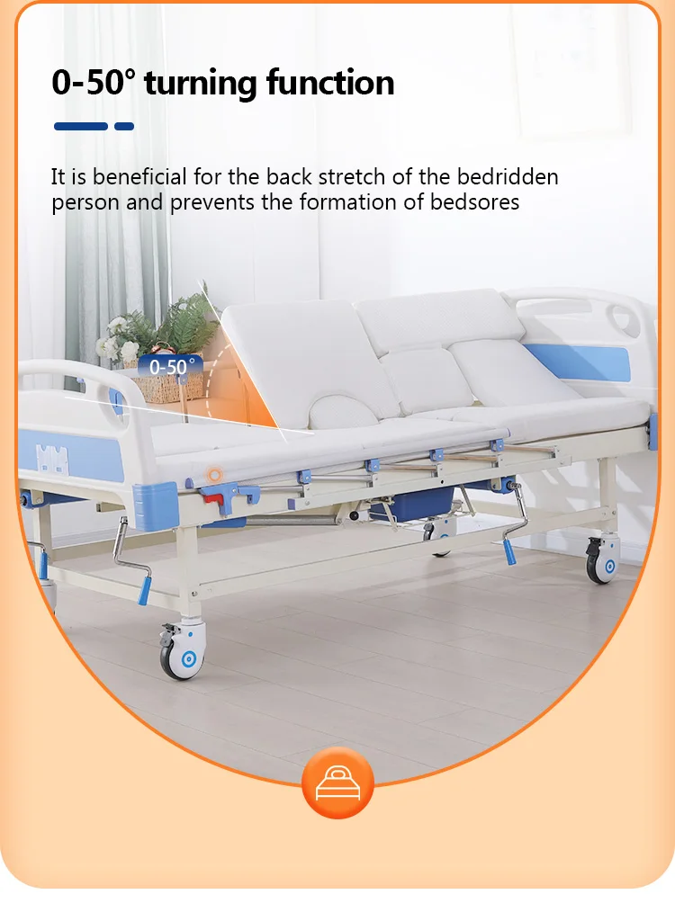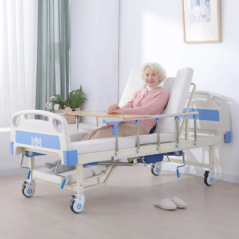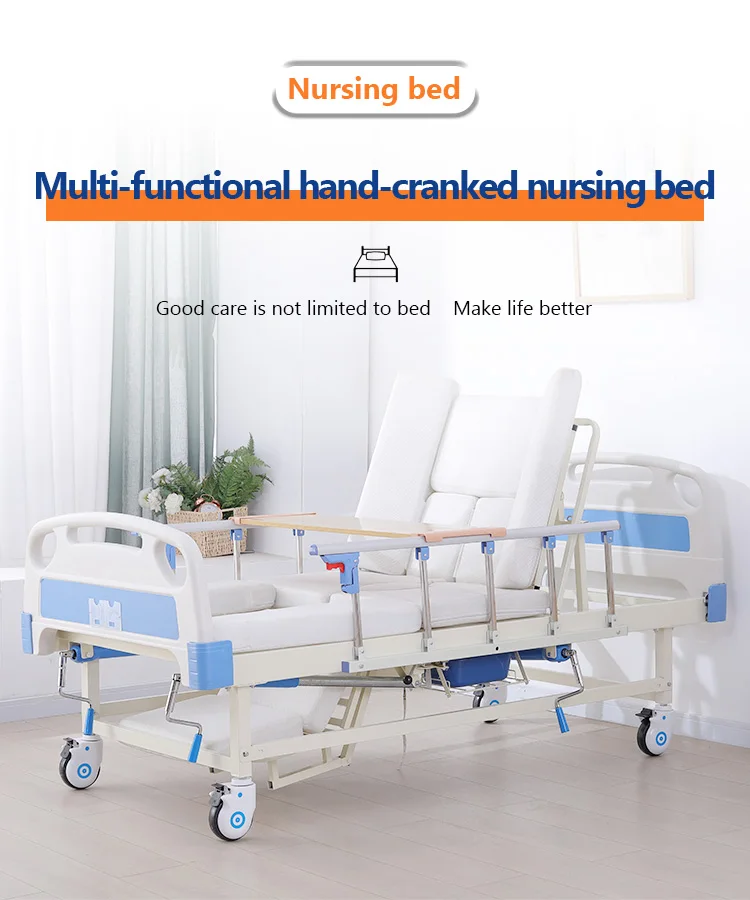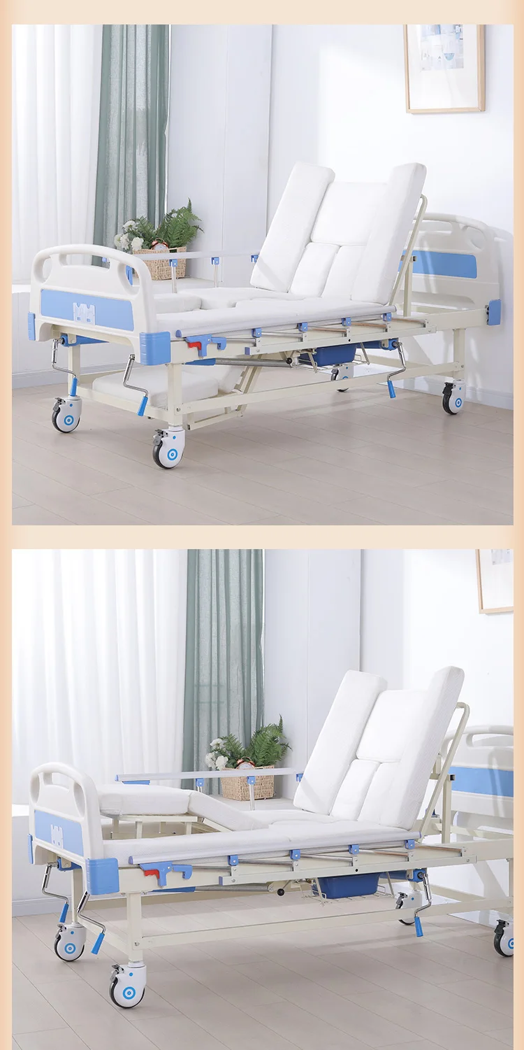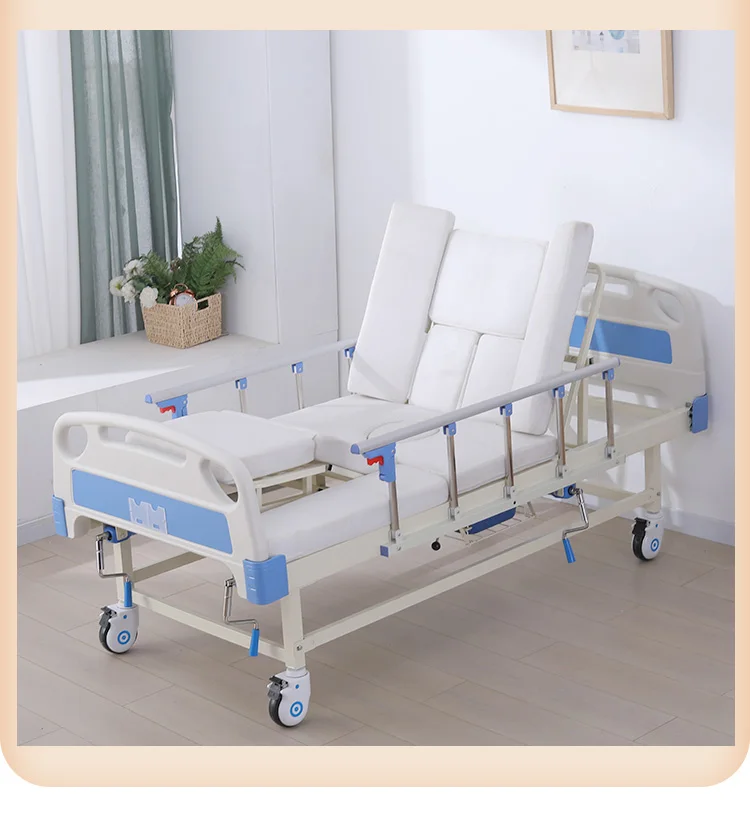 Cama de hospital manual de alta calidad, cama de enfermería para el cuidado del hogar con inodoro